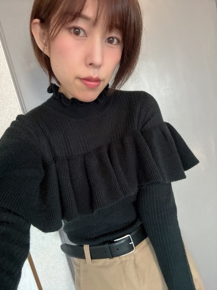 トップスの色はブラックで甘さを抑えました🖤