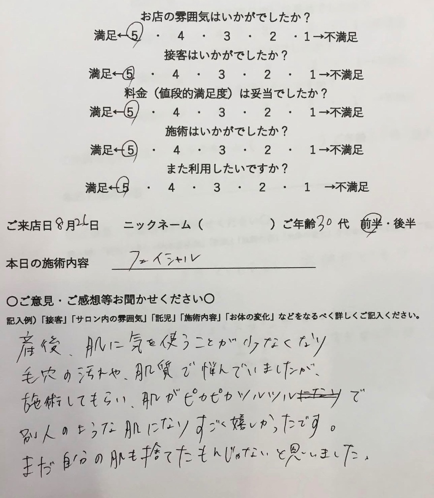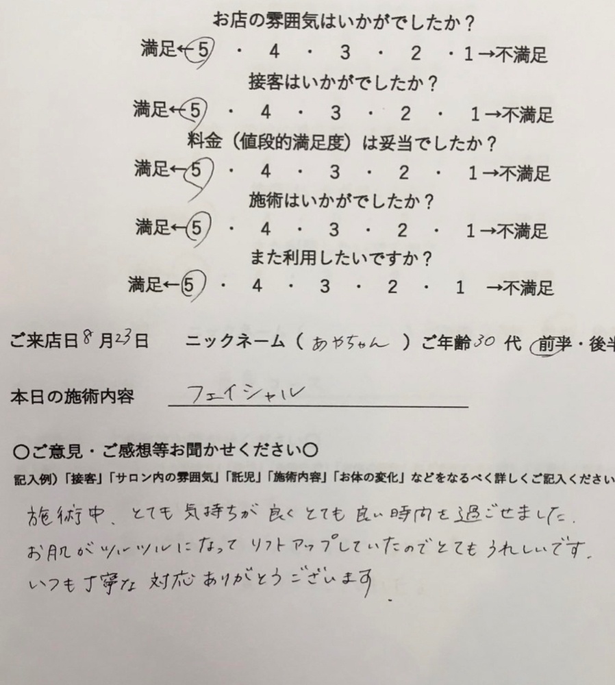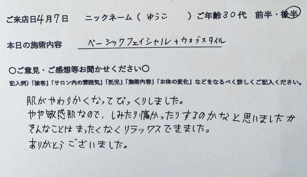 フェイシャルを受けてくださったお客様のお声